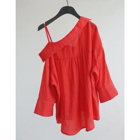 一の方に固定されたストラップでショルダーにかけたようなユニックなアイテム。柔らかくしなやかな素材で着心地ナチュラル。