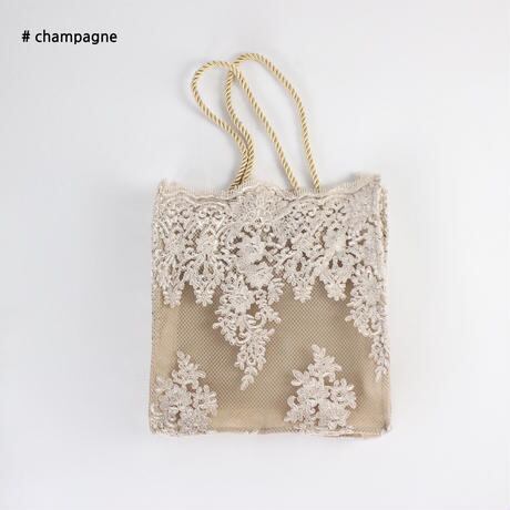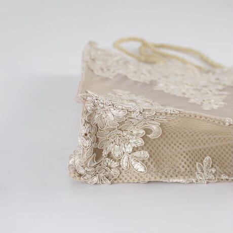春夏らしいメッシュ素材にレースをのせた上品で優しい雰囲気のバッグ。収納もたっぷり!普段使いはもちろんパーティーシーンにもオススメするアイテム。