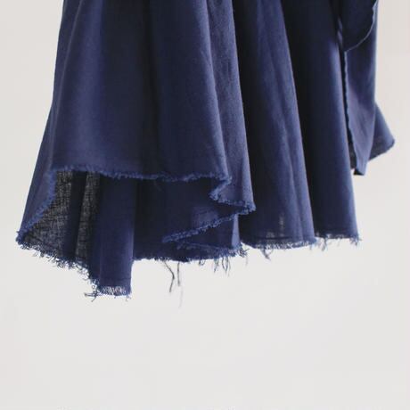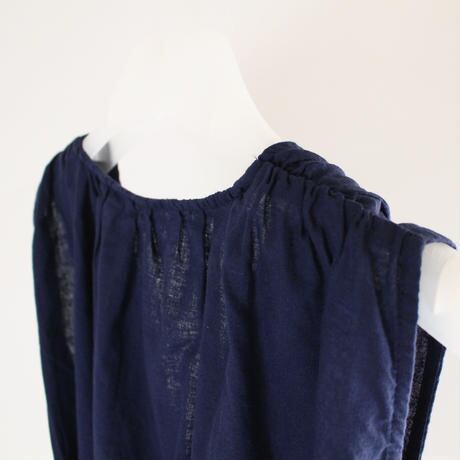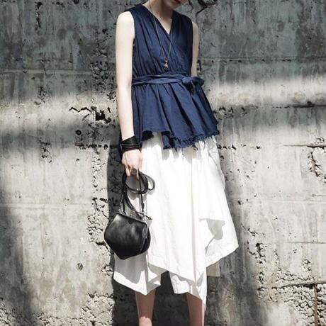 洗いかかったリネン素材のナチュラルな質感が心地いいノースリーブシャツ。内側と外側のストラップで着用、裾バリカット仕様のクラフトなアイテム。デイリーのカジュアルなスタイルとの合わせも◎パーティーシーンにもオススメするアイテム。