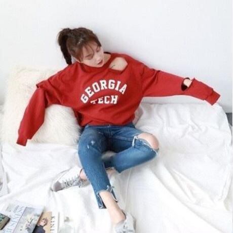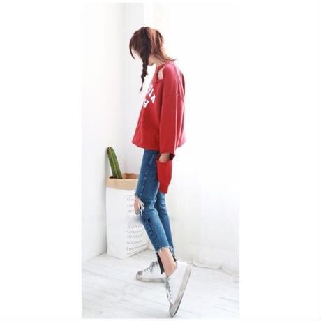 オリジナルスウェットにダメージ加工を施したデザイン。