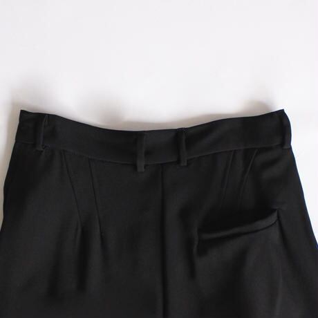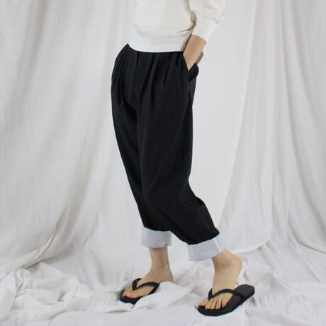 レトロ感ある美しいシルエットのスラックス。色違いの折り返しがアクセントになったデザイン。ウエストにはタックを施し、立体感ぼあるデザインに。インスタイルもキレイに仕上がります。