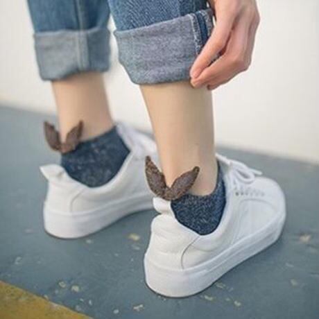 程よいフィット感で履き心地良い、後ろモコモコ羽のデザインが可愛いく、オシャレのアクセントにもなるソックス。オールシーズン使って頂けるアイテム。