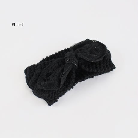 ふわふわモコモコリボンモチーフがキュートなニットヘアバンド。