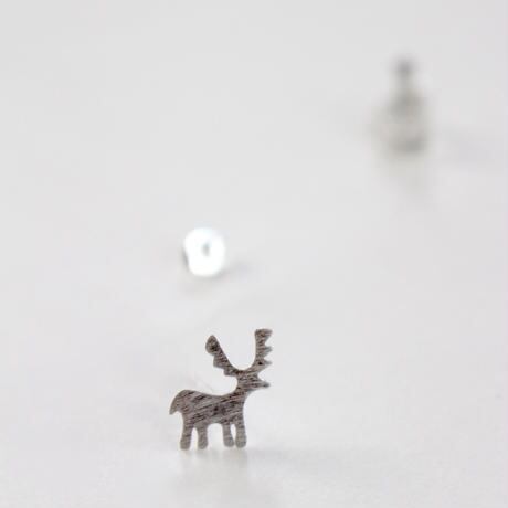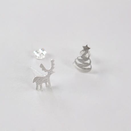 上質なシルバー素材を使用した小さなかわいいクリスマスツリーエルク鹿スタッドピアス。さりげない存在感が魅力。