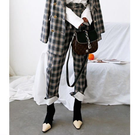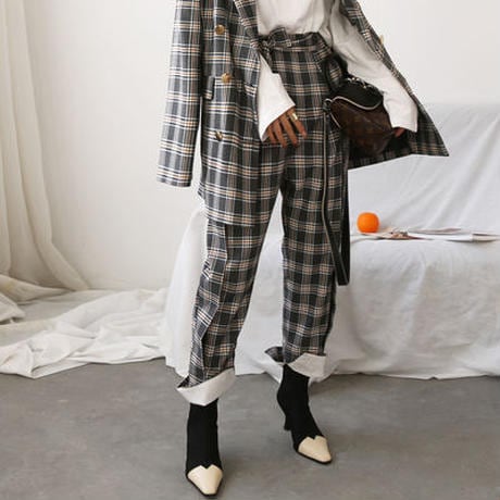 レトロクラシックチェックスーツパンツ