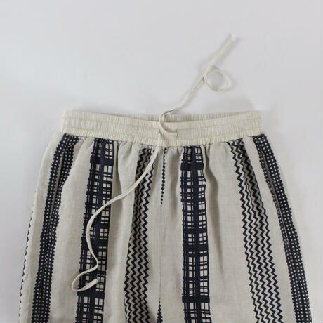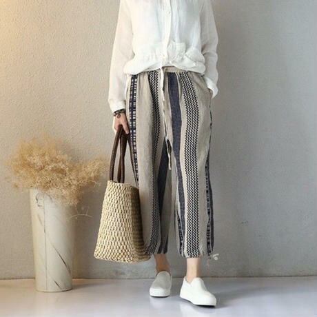 リネンストライプカジュアルパンツ。洗いのかかったナチュラルなリネン素材。ゆったりとした着用感は、デイリー使いにぴったり。