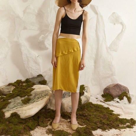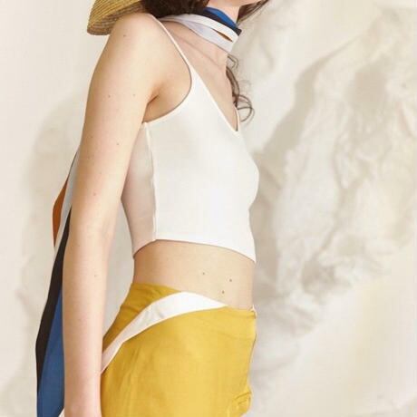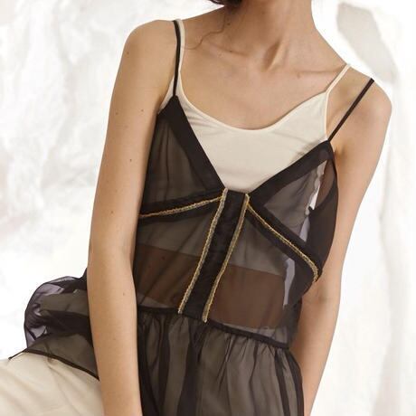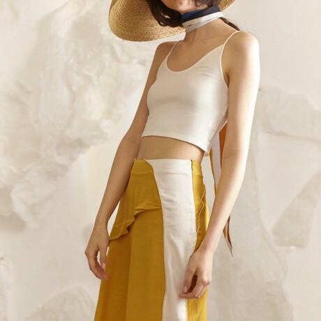 フロント描いたカーブがオリジナルティーあるデザイン。キャミソールタイプなので、涼しく快適に過ごせる女性らしいアイテム。