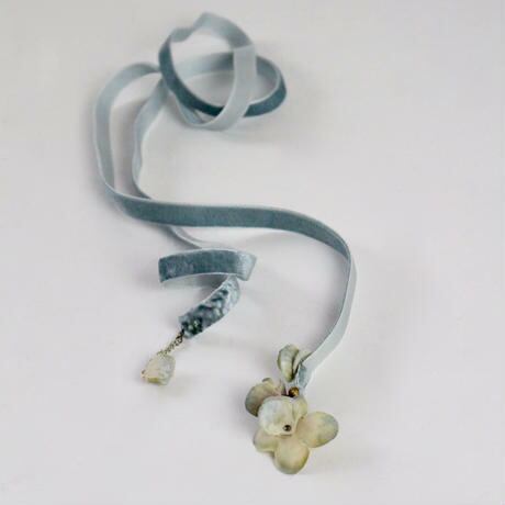 シンプルなベルベットのチョーカーネックレスに繊細な花びらとビジューを乗せたアイテム。さりげなく揺れる花びらがおしゃれな♪スタイルのワンポイントにおすすめです。