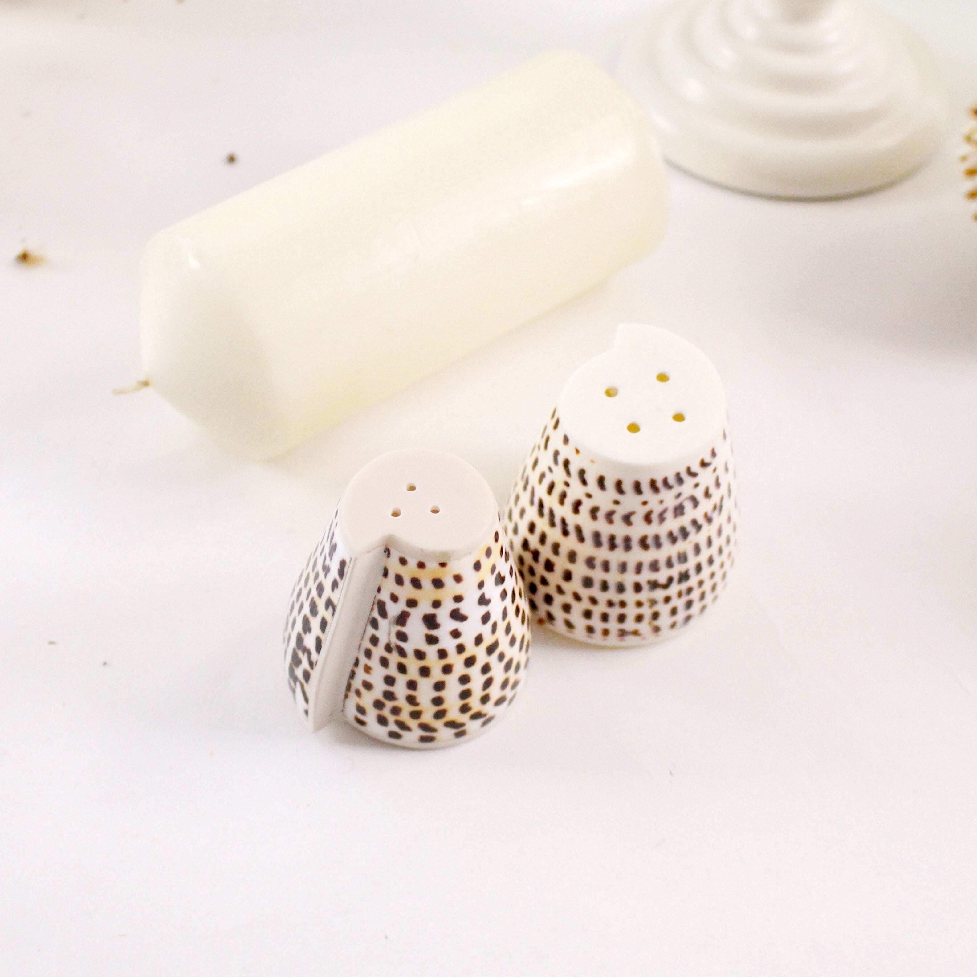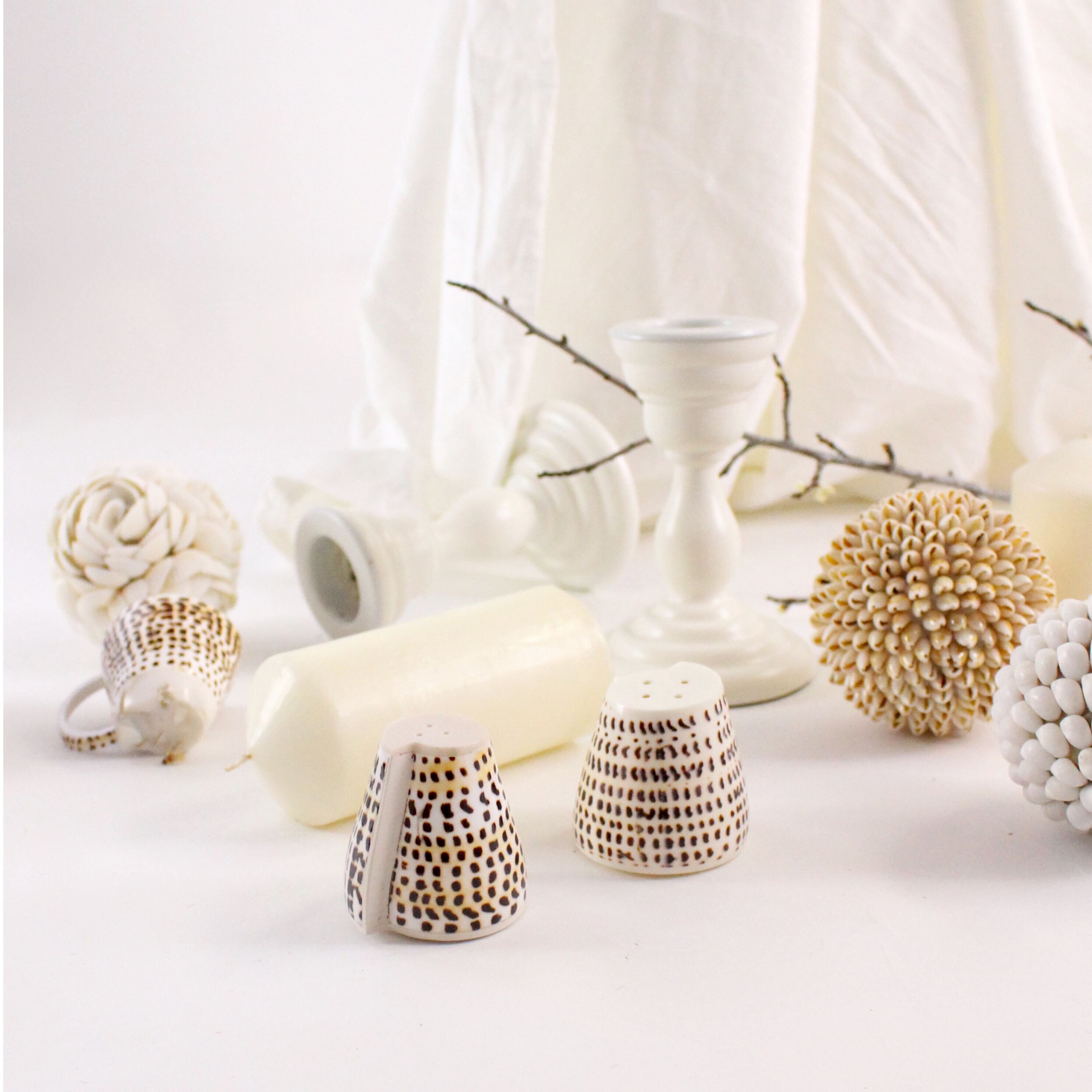 天然シェルで作られた’SAMOA ソルト&ペッパーシェーカー。自然素材ならではの手づくりのテイストとエスニックな一時をお楽しみ下さい。