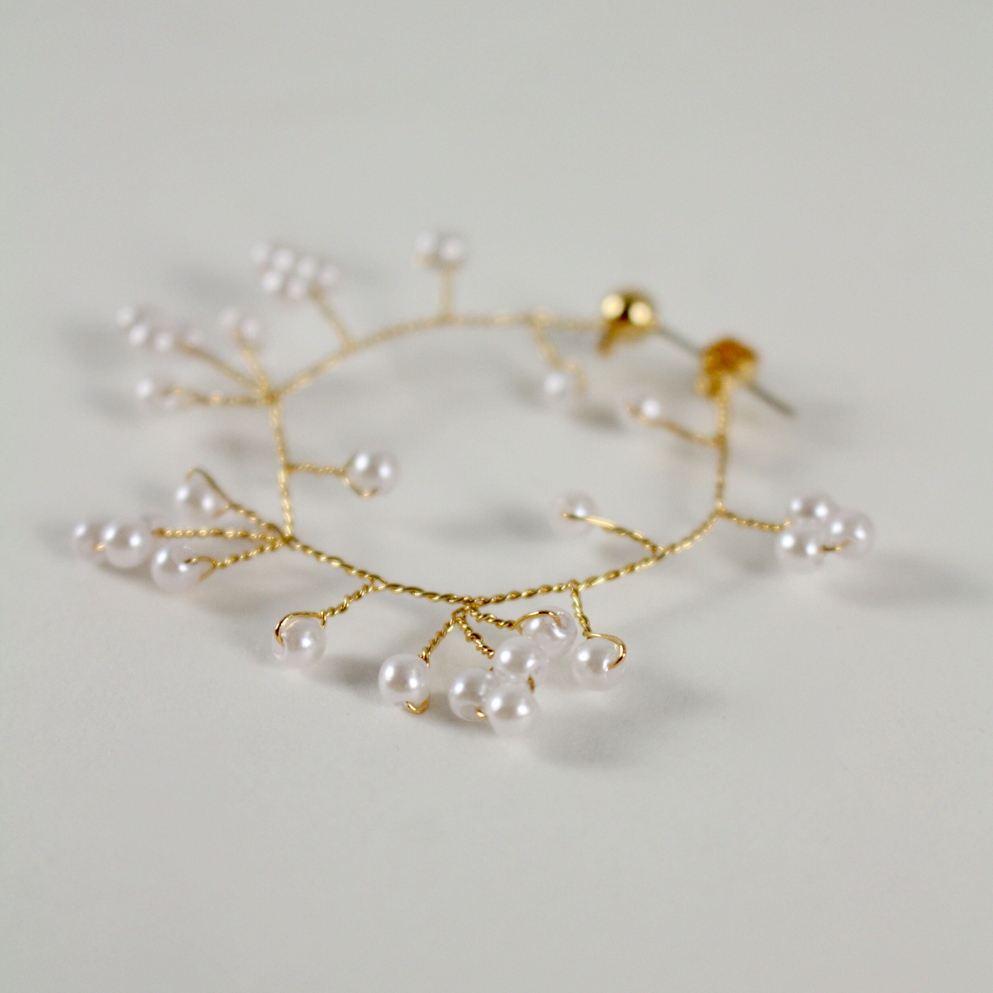 ナチュラルシェルの表情ゆたかなイヤリング。程よい上品さでメリハリのあるデザインが魅力。いつものコーディネートにプラスするだけで新たなニュアンスを持たせてくれルアイテム。